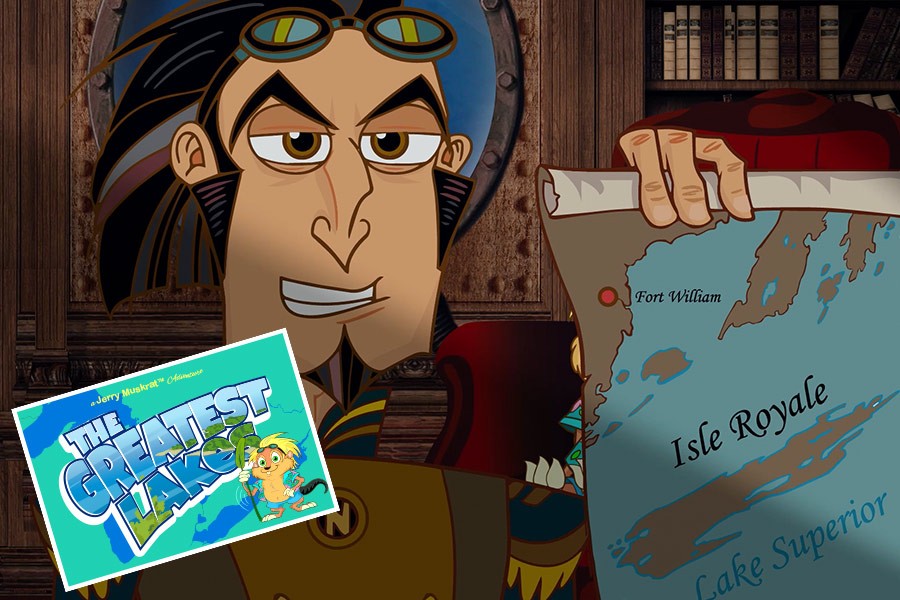 Jerry Muskrat is on his raft with Snappy, pretending to be the Captain of a ship in a storm. He spots a message in a bottle. It's from Captain Nemo, inviting Jerry to the bottom of Lake Superior to learn about about the sinking of the Algoma. Nemo recounts the tale of how the pride of the CPR fleet hit a sudden storm on Nov 7th, 1885, and sank near the shores of Port Arthur, now called Thunder Bay. With the help of Dr. N and Fulgur aboard the Nautilus, Jerry also learns about the concept of buoyancy, or the "Archimedes Principle". Nemo then sends him off to find a missing gear in Thunder Bay, under the watchful eye of the "Sleeping Giant".